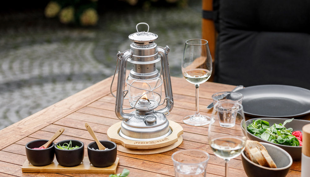 Seit über 125 Jahren steht die Feuerhand Sturmlaterne für Beleuchtung im Alltag der Menschen. Dabei hat die Sturmlaterne ihr Ursprungsland nie verlassen und wird nach wie vor in Deutschland hergestellt. Hier trifft Traditionshandwerk einer deutschen Manufaktur auf den modernen Zeitgeist mit Nachhaltigkeitscharakter. Der Sturmlaternenklassiker Baby Special 276 wird seit 1989 nahezu baugleich gefertigt, Ersatzteile für Restaurierungen sind auch nach Jahrzehnten noch verfügbar. Das offene Kaltluftsystem sorgt für ein konstantes und gleichmäßiges Flammenbild und erleuchtet jeden geselligen Abend unter freiem Himmel. Mit ihrer speziellen Bauweise verbreitet die Baby Special 276 besonders helles Licht. Durchdacht bis ins kleinste Detail ist die Feuerhand Sturmlaterne ein meisterhaftes Beispiel qualitativer und unvergänglicher Handwerkskunst.