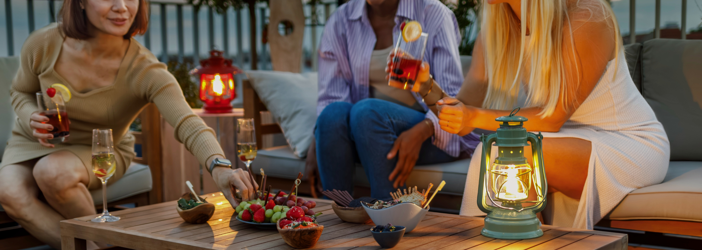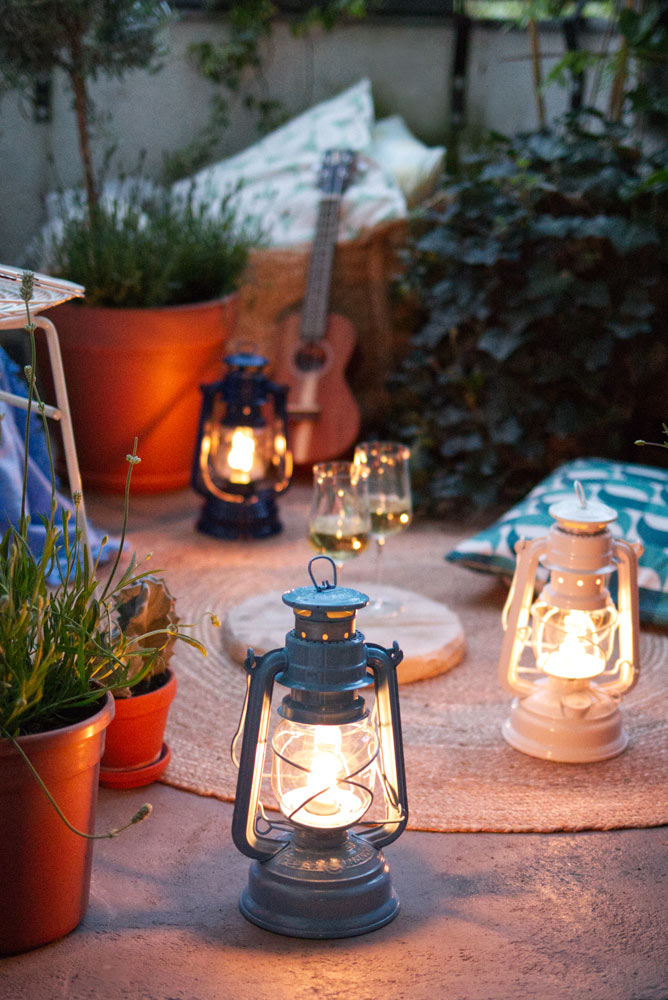 Für einen cozy Abend mit deinen Freunden kannst du mit unserer Laterne bei tollen Licht auf dem Tamber leckere Gerichte grillen.